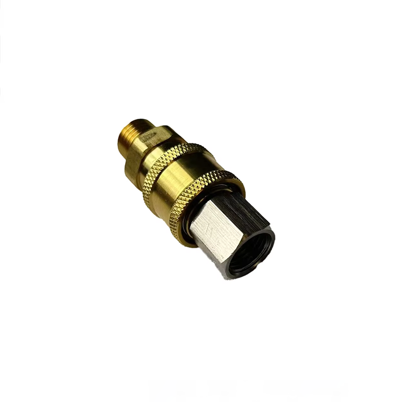 การออกแบบขนาดของสกรู coupler ขนาด 1/4 นิ้วที่ผลิตโดย บริษัท Genuinsky นั้นแม่นยำ ปลายด้านหนึ่งของผลิตภัณฑ์เองคือด้ายหญิง M14 ที่มีเส้นผ่านศูนย์กลาง 12.5 มม. และอีกด้านหนึ่งคือ taper 14 มม. h ole. และมีการออกแบบสัมผัสสองครั้ง การสัมผัสสองครั้งมักจะหมายความว่าการเชื่อมต่อและการถอดชิ้นส่วนสามารถทำได้ผ่านสองสัมผัส ในช่วงเวลานี้ไม่จำเป็นต้องใช้เครื่องมืออื่น ๆ ในการร่วมมือ วัสดุของสองสัมผัสทองเหลือง 20 SFA เป็นทองเหลือง ชิ้นส่วนที่เชื่อมต่อที่ทำจากวัสดุทองเหลืองมีความต้านทานการกัดกร่อนที่ดีเยี่ยมและยังนำความแข็งแรงและความแข็งบางอย่างมาสู่สกรู coupler ขนาด 1/4 นิ้วดังนั้นจึงสามารถเผชิญหน้ากับการสัมผัสประจำปีด้วยสภาพแวดล้อมการทำความสะอาดแรงดันสูงที่ซับซ้อนเช่นน้ำประปาและสารทำความสะอาดไม่ง่าย ในสถานการณ์การใช้งานประจำวันมักจะใช้สำหรับการทำความสะอาดรถยนต์หรือการบำรุงรักษาความงามในรถยนต์ ในสถานการณ์อุตสาหกรรมมันยังสามารถใช้สำหรับการเชื่อมต่อของอุปกรณ์ท่อภายใน จากรายวันสู่อุตสาหกรรมสามารถใช้ในสภาพแวดล้อมที่หลากหลาย