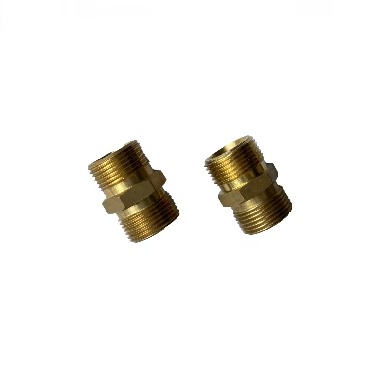 การออกแบบขนาดของผลิตภัณฑ์มีความแม่นยำ ซึ่งสามารถจับคู่กับอุปกรณ์ทำความสะอาดแรงดันสูงที่สอดคล้องกันได้อย่างสมบูรณ์แบบ ปลายด้านหนึ่งของผลิตภัณฑ์คือเกลียวตัวเมีย M22×1.5 โดยมีเส้นผ่านศูนย์กลาง 22 มม. และแกนเส้นผ่านศูนย์กลาง 14 มม. ปลายอีกด้านหนึ่งคือแกน dia.15mm ขนาดเกลียวนอกของ M22 เป็นขนาดมาตรฐานทั่วไปของอุปกรณ์ทำความสะอาดแรงดันสูงและระบบไฮดรอลิกขนาดเล็กในท้องตลาด ผลิตภัณฑ์สามารถจับคู่อุปกรณ์เหล่านี้เพื่อให้เกิดการเชื่อมต่อที่ราบรื่นและการปรับเปลี่ยนที่แม่นยำ นอกจากนี้ ช่องรับแสงที่มีเส้นผ่านศูนย์กลางต่างกันของผลิตภัณฑ์คือแกนเส้นผ่านศูนย์กลาง 15 มม. ที่ปลายด้านหนึ่งและแกนเส้นผ่านศูนย์กลาง 14 มม. ที่ปลายอีกด้านหนึ่ง ดังนั้นจึงสามารถปรับข้อกำหนดการเชื่อมต่อที่มีเส้นผ่านศูนย์กลางต่างกันได้อย่างยืดหยุ่น และแก้ปัญหาการปรับตัวท่อที่มีเส้นผ่านศูนย์กลางต่างกันได้ยากในการดำเนินการทำความสะอาดแรงดันสูง ตัวผลิตภัณฑ์ทำจากทองเหลือง ทองเหลืองไม่เพียงแต่มีความต้านทานการกัดกร่อนที่ดีเยี่ยม แต่ยังสามารถต้านทานการกัดกร่อนที่เกิดจากน้ำหรือน้ำยาทำความสะอาดบางชนิดในสภาพแวดล้อมการทำงานที่ซับซ้อนในระยะยาว เพื่อหลีกเลี่ยงการรั่วไหลของซีลที่เกิดจากการกัดกร่อน ในเวลาเดียวกัน ทองเหลืองมีความแข็งและความแข็งแรงสูง จึงสามารถคงความเสถียรเมื่อเผชิญกับแรงกระแทกแรงดันสูง และไม่แตกและรั่วง่าย ในที่สุด ทองเหลืองก็ง่ายต่อการแปรรูป ซึ่งสามารถควบคุมข้อผิดพลาดของความแม่นยำของเกลียวและรูรับแสงภายใน 0.02 มม. อย่างเคร่งครัด ซึ่งสามารถรับประกันการปิดผนึกระหว่างการเชื่อมต่อ