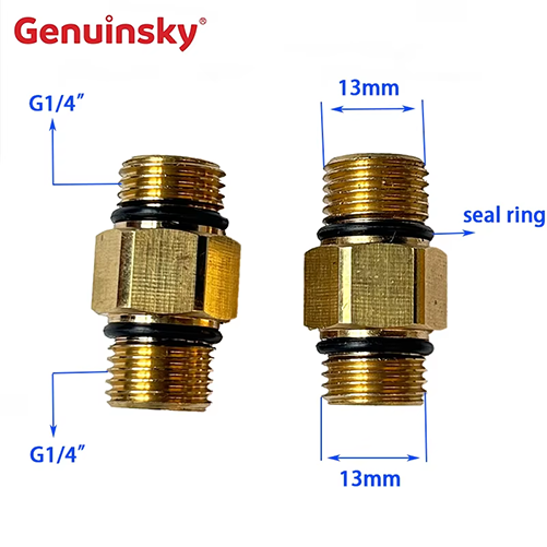 หัวนมทองเหลืองที่มีเกลียวตัวผู้ทั้งสองด้าน G1/4 เป็นของขั้วต่อระบบของของเหลวแรงดันสูงทั้งสองด้านเป็นด้ายตัวผู้ G1/4 "โดยมีเส้นผ่านศูนย์กลาง 13 มม. และซีล RI ทั้งสองด้าน NG