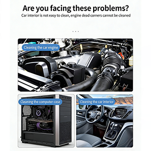 ช่องว่างที่นั่งในรถ ช่องเก็บของที่ประตู หรือท่อเครื่องปรับอากาศ และสถานที่อื่นๆ ถือเป็นพื้นที่ภัยพิบัติหนักซึ่งสิ่งสกปรกและตะกรันซ่อนอยู่ ด้วยชุดปืนฉีดฝุ่นนี้ คุณสามารถขจัดฝุ่นที่ฝังแน่นได้อย่างง่ายดาย โดยไม่ทำให้ท่อยางและชิ้นส่วนอิเล็กทรอนิกส์ในรถยนต์เสียหาย การมีเพศสัมพันธ์อย่างรวดเร็วที่ปลายทั้งสองข้างของหลอดลมก็มีประโยชน์เช่นกัน การออกแบบปลั๊กอินไม่จำเป็นต้องใช้เครื่องมือที่ซับซ้อนอื่นๆ สามารถเชื่อมต่อกับปั๊มลมออนบอร์ดหรือเครื่องอัดอากาศแบบพกพาได้อย่างรวดเร็ว งานกำจัดฝุ่นสามารถเสร็จสิ้นได้ตลอดเวลาโดยไม่ต้องดำเนินการที่ซับซ้อน ซึ่งช่วยปรับปรุงประสิทธิภาพการทำงานได้อย่างมาก