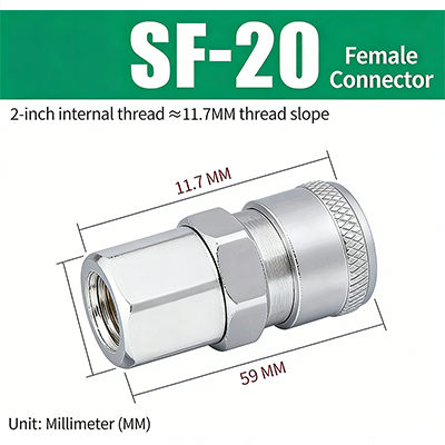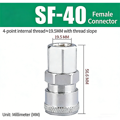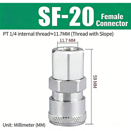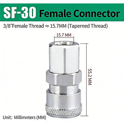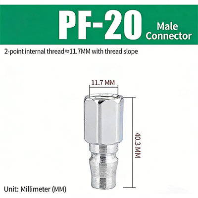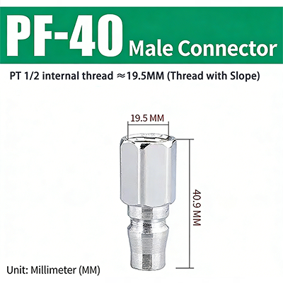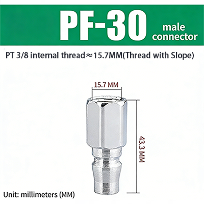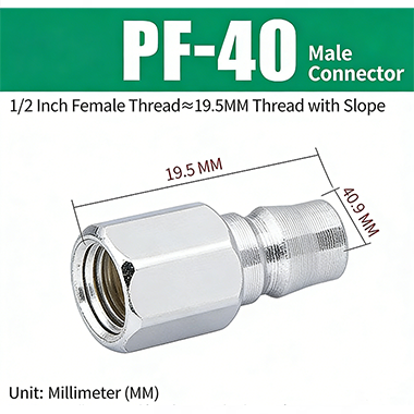 ข้อต่อสวมเร็วชนิด C ซีรีส์ PF–SF พร้อมเกลียว JIS PT มีโครงสร้างปลั๊กสวมเร็วชนิด C สามารถจับคู่หัวชายและหญิงได้ตามต้องการและสามารถเสียบและเชื่อมต่อได้ซึ่งสะดวกมาก ข้อต่อใช้การชุบผิวด้วยไฟฟ้า โดยมีแกนทองแดงภายใน ซึ่งไม่เพียงแต่ทนทานต่อการกัดกร่อน แต่ยังทนทานต่อการสึกหรอ ซึ่งช่วยเพิ่มความทนทานของข้อต่อและยืดอายุการใช้งาน