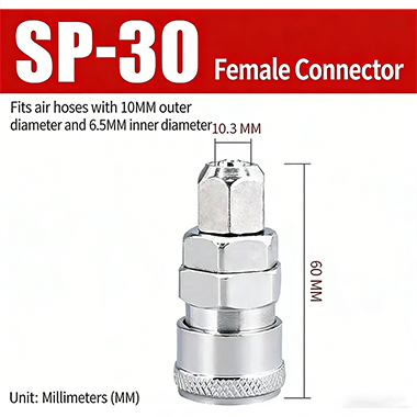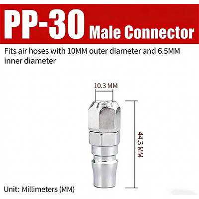 ข้อต่อสวมเร็วชนิด C ซีรีส์ PP–SP พร้อมเกลียว JIS PT มีโครงสร้างปลั๊กสวมเร็วชนิด C สามารถจับคู่หัวชายและหญิงได้ตามต้องการและสามารถเสียบและเชื่อมต่อได้ซึ่งสะดวกมาก ข้อต่อใช้การชุบผิวด้วยไฟฟ้า โดยมีแกนทองแดงภายใน ซึ่งไม่เพียงแต่ทนทานต่อการกัดกร่อน แต่ยังทนทานต่อการสึกหรอ ซึ่งช่วยเพิ่มความทนทานของข้อต่อและยืดอายุการใช้งาน
